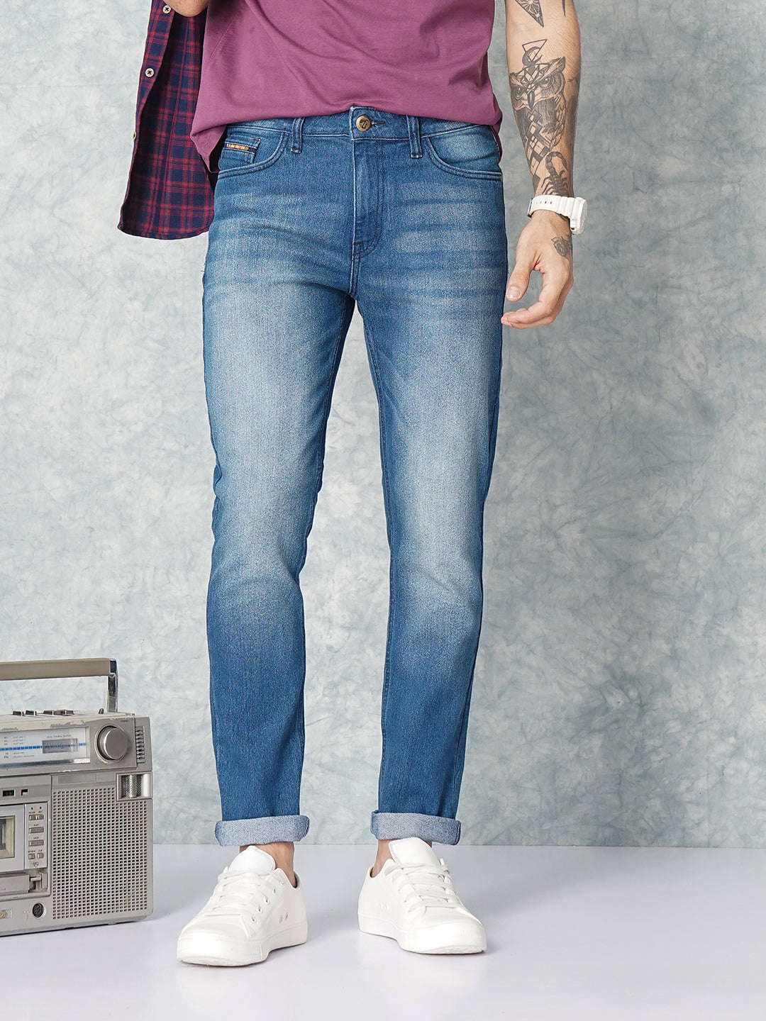 Men's Blue Slim Fit Solid Casual Jeans