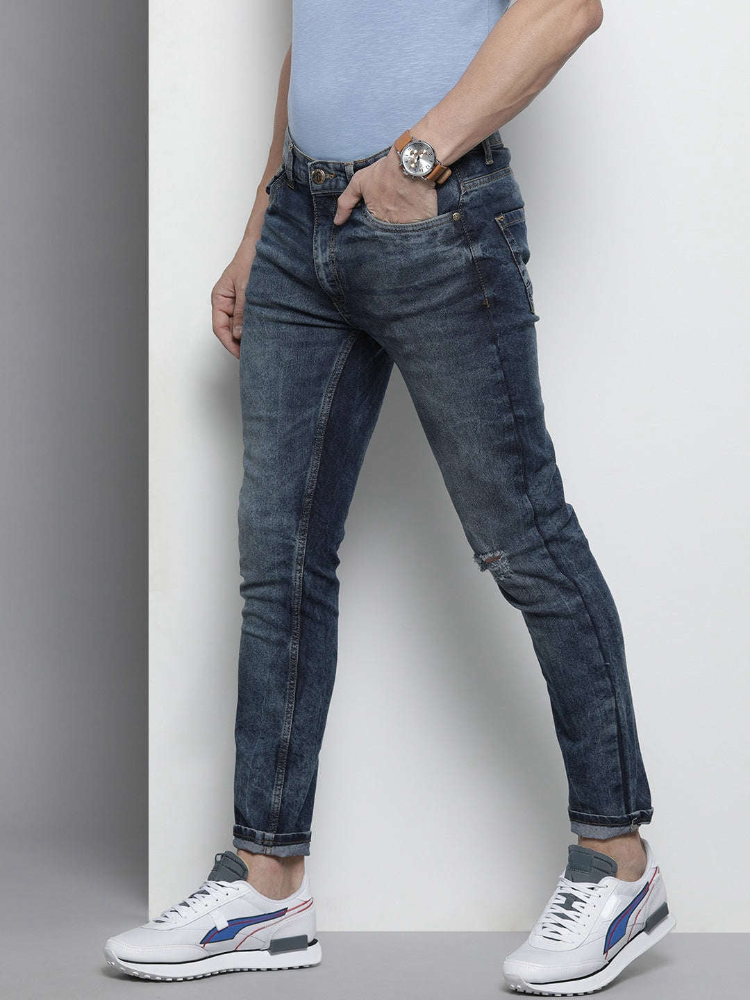 Men's Blue Slim Fit Solid Street Wear Jeans
