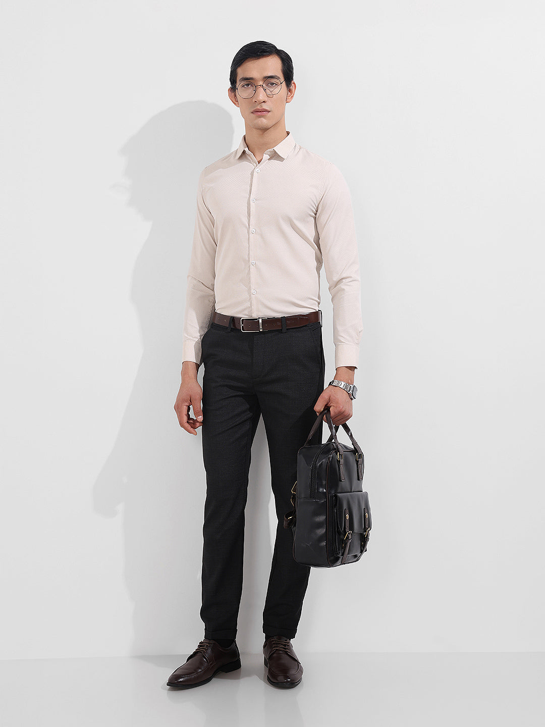 Men's Beige Slim Fit Geometric Print Formal Shirt