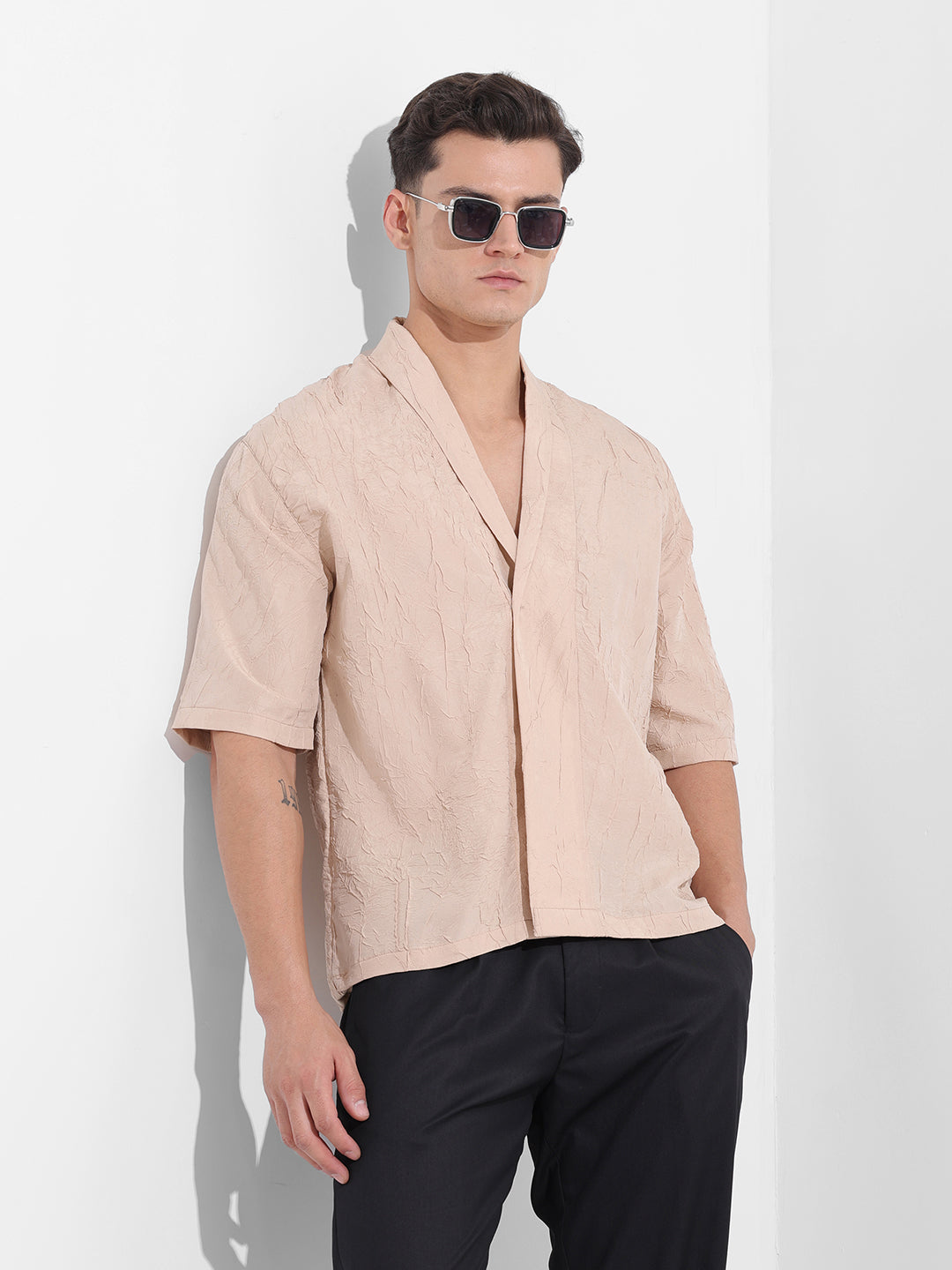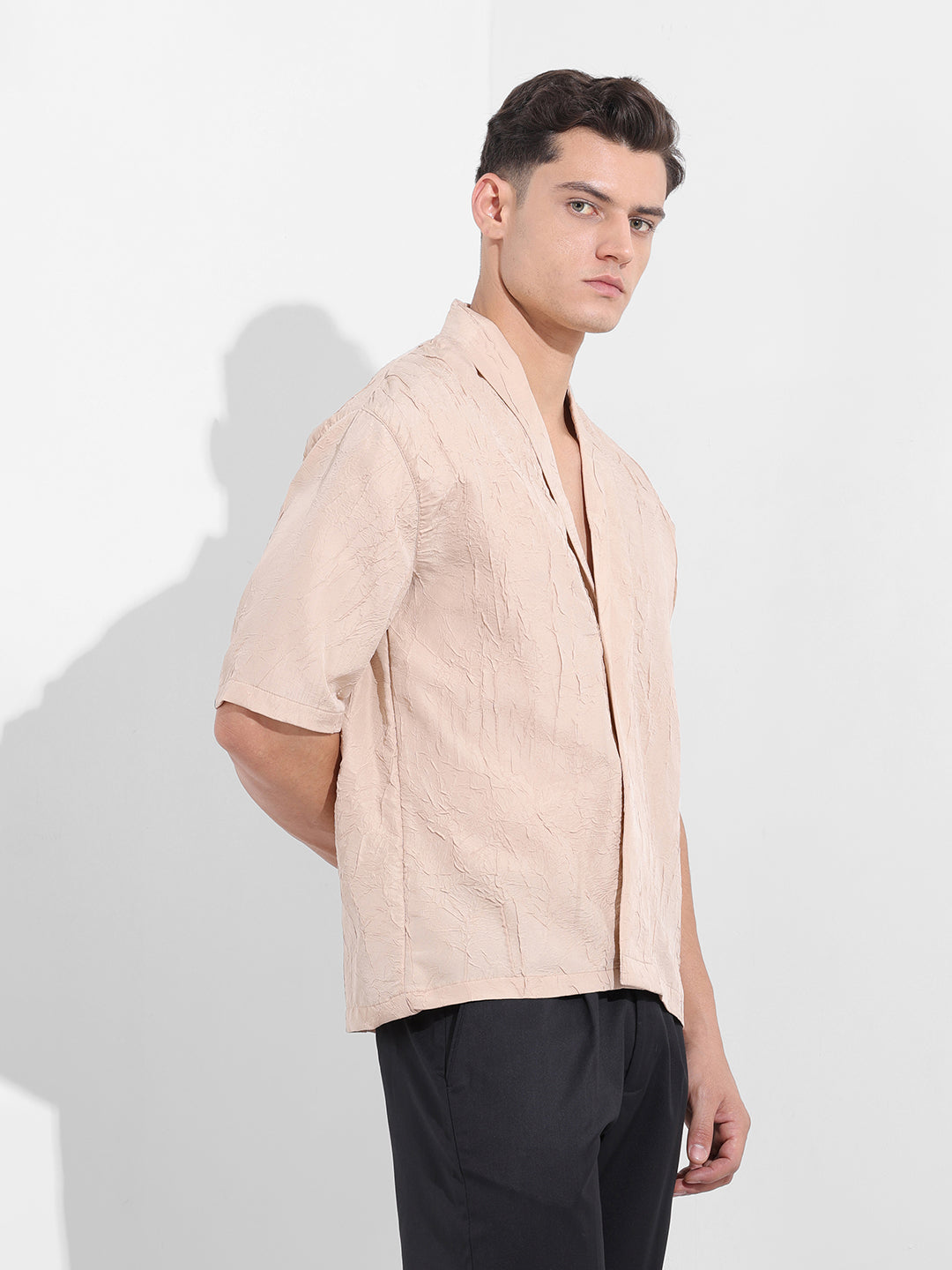 Men's Beige Relaxed Fit Textured Party Wear Shirt